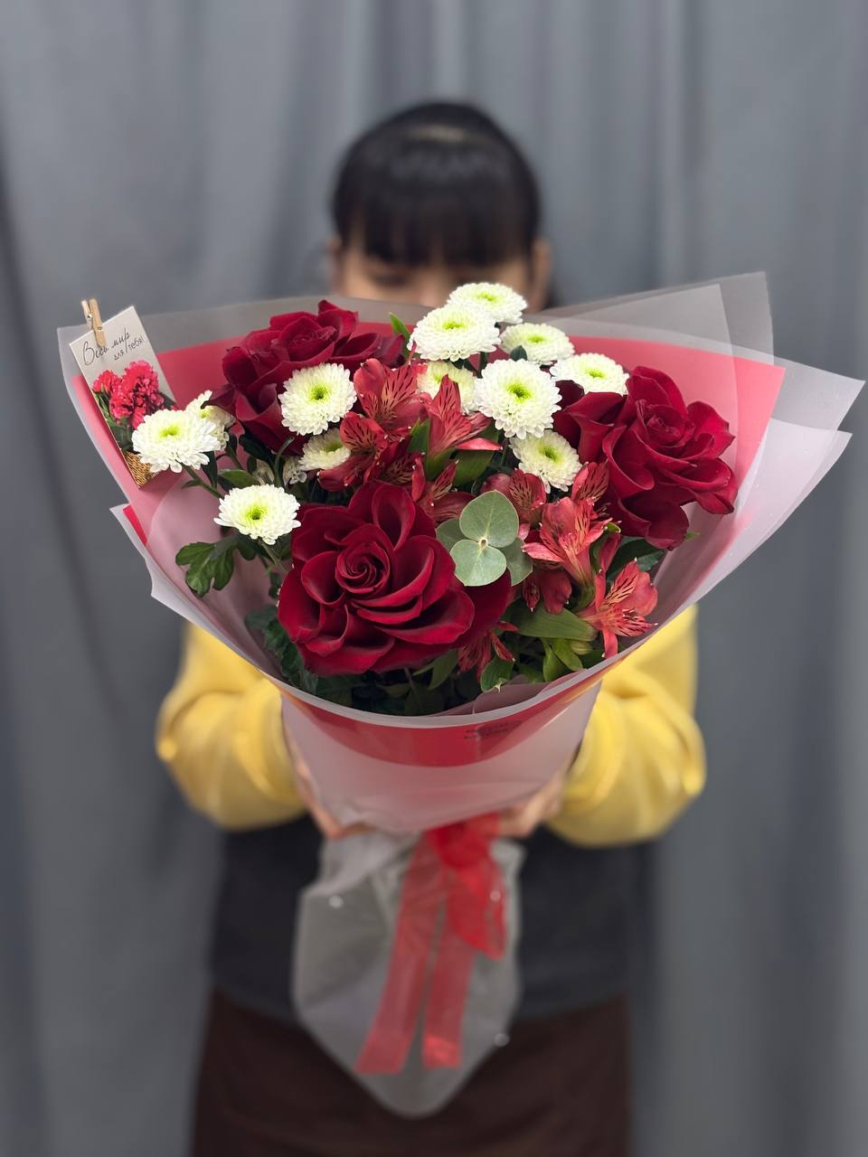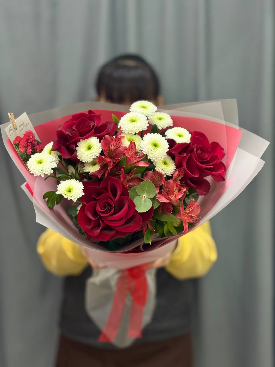 В подарок: К букету мы прилагаем открытку, инструкцию по уходу и средство по сохранению свежести букета.